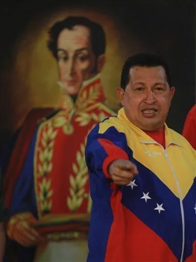 Hugo Chávez took power in Venezuela in 1998 with Bolívar’s name on his lips. It wasn’t a subtle homage. He renamed the country the “Bolivarian Republic of Venezuela.” He launched the “Bolivarian Revolution.” He invoked Bolívar in nearly every speech. He recycled the whole revolutionary aesthetic. He even digs up Bolívar’s bones for a fancy new tomb because why not add necromancy to your cult starter pack? The symbolism was unambiguous: we’re completing the liberation project. No more yankee bootlicking!