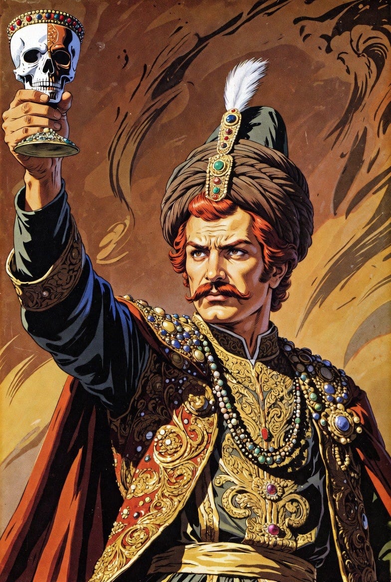 It’s 1501, Tabriz. A 14-year-old kid who’s been hiding in the mountains his entire childhood suddenly rides into the capital at the head of 7,000 fanatical warriors wearing red turbans. This red-headed teenager named Ismail is the spiritual leader of a Sufi order called the Safavids. Ismail commands a tiny force of Turkmen cavalry who believe he is the Mahdi, the messiah, literally semi-divine. They throw themselves into battle unarmed because they think he has miraculous powers. Over the next few years, they fight battle after battle until they control all of what is modern-day Iran. He defeats the Uzbeks, kills their leader, and has his skull made into a bejeweled drinking cup. The divine invincibility thing seems confirmed.