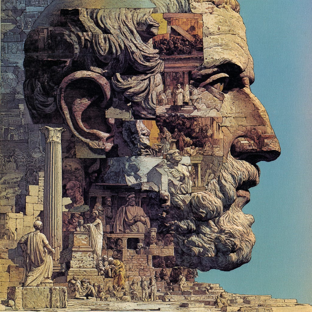 Athens, 447 BCE. The Acropolis is a construction site. Marble dust hangs in the air like vape clouds at a Dimes Square vernissage, except this will actually matter. Phidias, the greatest sculptor anyone has ever seen, moves between work crews screaming at apprentices who cannot get the drapery right. Down in the city, Sophocles is workshopping a new tragedy while Socrates haunts the agora debating ideas he will later die for.