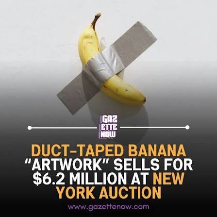It is 2026. Fifty years of unprecedented material wealth. The results: Marvel movies where the stakes keep receding toward the event horizon of pure abstraction, glass box architecture designed by the same algorithm that recommends you protein powder, media content so derivative it makes you nostalgic for mediocrity, and a banana duct-taped to a wall selling for $6.2 million, which is just money laundering with extra steps.